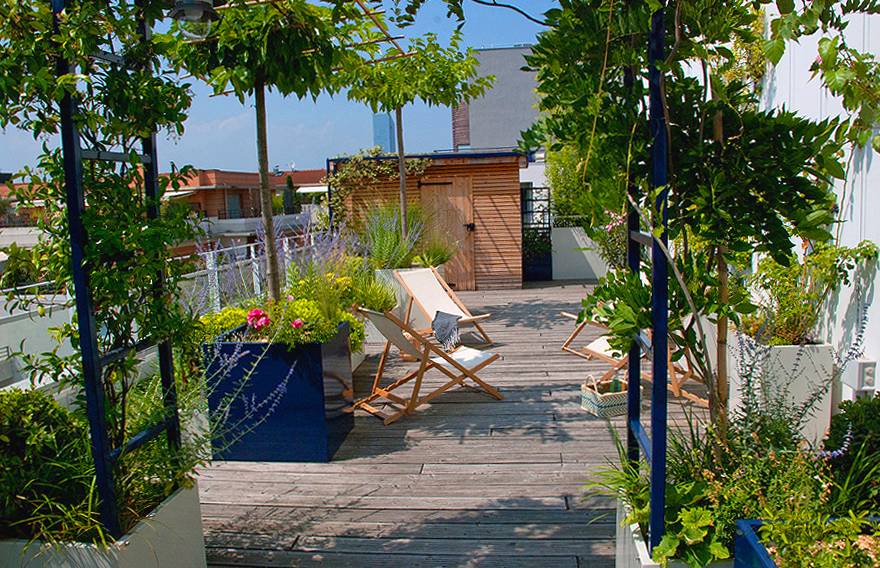 Havre de paix au cœur de la ville, ce toit-terrasse est un espace de détente à vivre toute l’année.