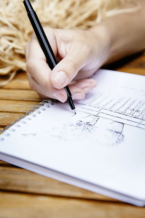 En point de départ, a été dessinée une zone centrale laissée libre pour accueillir les parties de ping-pong en famille! Autour de cette axe, s'articulent un espace repas et divers espaces détente, grâce au larges canapés invitant au farniente. Pour répondre aux contraintes pratiques des lieux, nous avons créé le mobilier adapté: cabane et buffet de rangement.